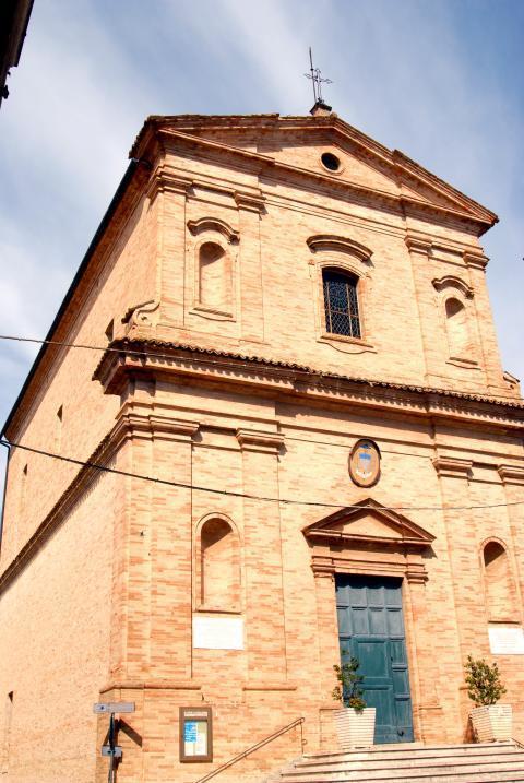It’s the main church of the town dedicated to the SS. Sacrament and Rosary; it was erected in the second half of the 18th century,in order to enlarge the oldest but narrow Church of S. Petronilla, a patron saint of Grottazzolina. With a simple rectangular apsidal plan, it has a traditional brick curtain façade. Remarkable is the internal decoration due to Luigi Fontana, such as "The Last Supper with the Communion of the Apostles", the Delivery of the Keys to St. Peter " , “The Washing of the Feet. The altarpiece is also by the hand of Fontana, a canvas depicting St. Dominic receiving the Rosary from the Madonna and Child. Behind the altarpiece, a niche houses a wooden Madonna with Child of the 17 th century. On the counter-façade a large lunette overlooks the choir with the Callido organ (18th century).